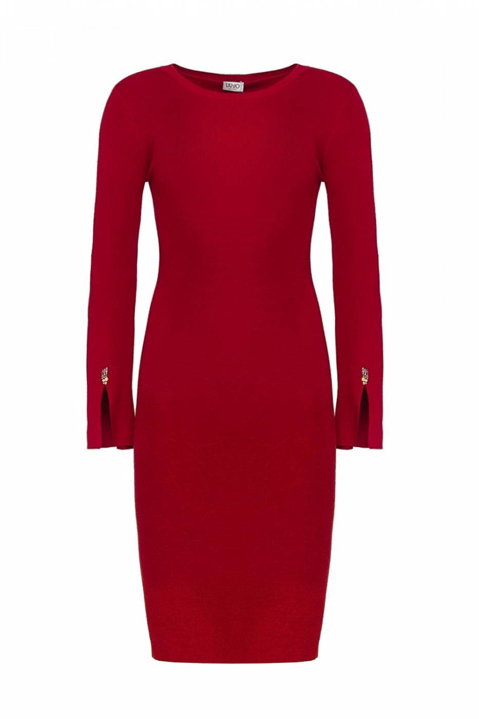 Abito Liu Jo in maglia rosso, al ginocchio, maniche lunghe con spacchetti.