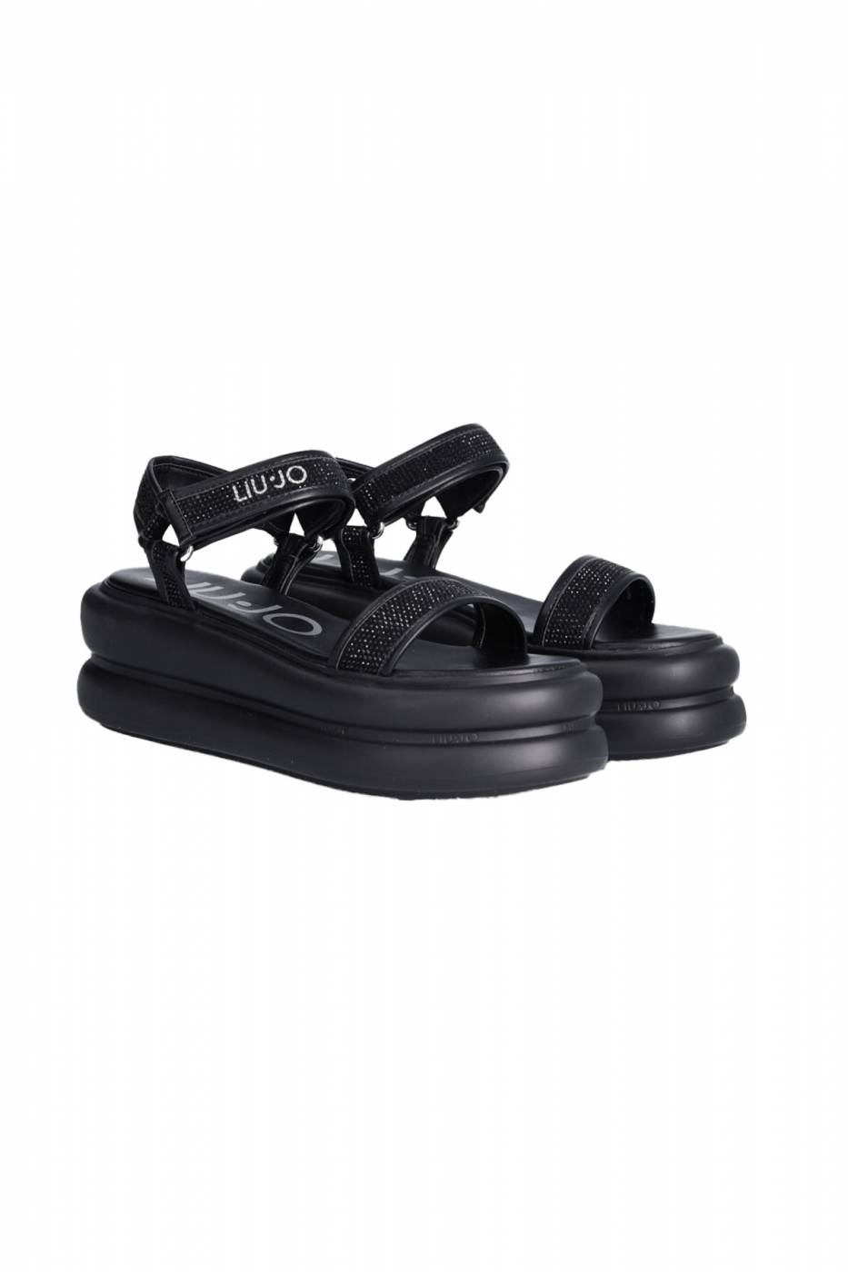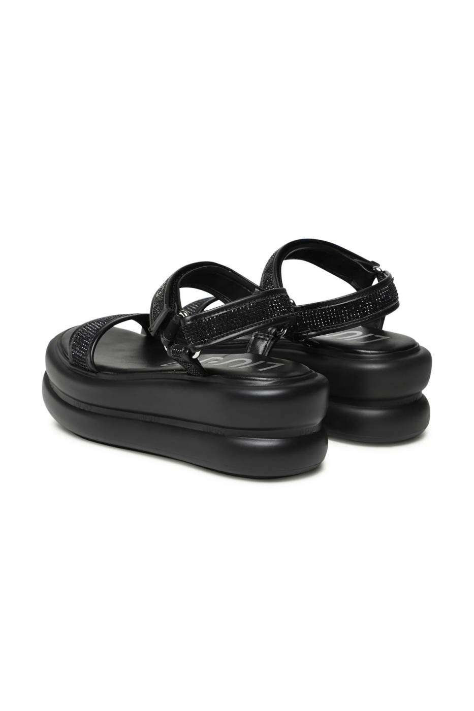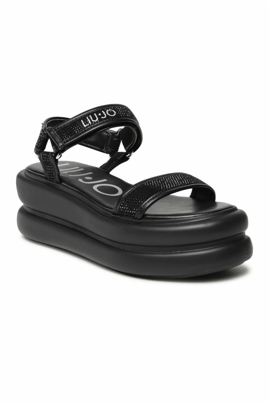 Sandali Liu Jo con strass, chiusura in velcro alla caviglia, suola platform effetto bold con logo, altezza tacco: 7,5 cm