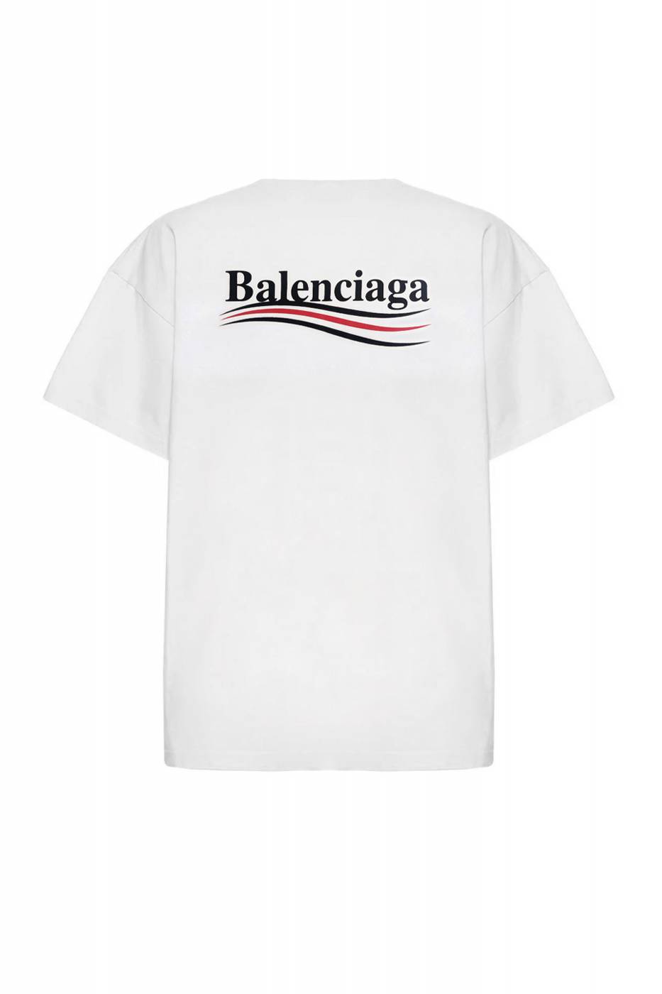 T shirt Balenciaga girocollo con stampa logo piccola sul fronte, e stampa logo maxi sul retro. Vestibilità oversize.