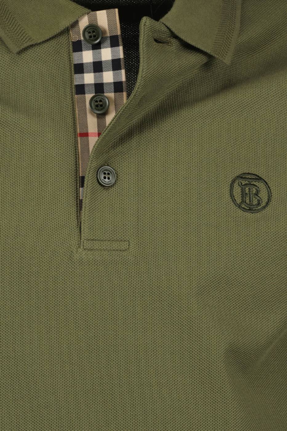 Polo in cotone piqué con monogramma Thomas Burberry ricamato. Burberry Check sulla paramontura.