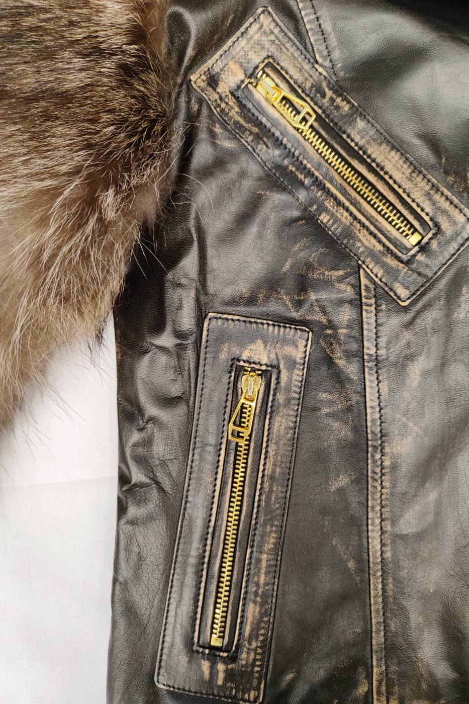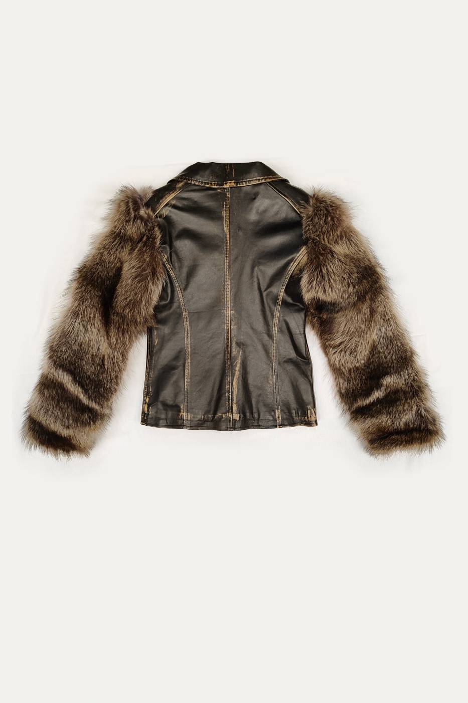 Giubbotto in nappa con maniche in pelliccia di marmotta