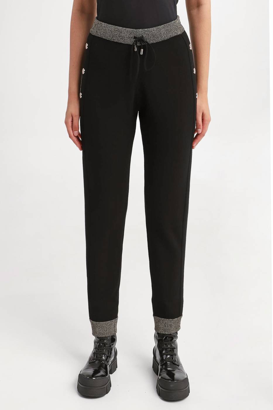 Pantaloni Liu Jo in maglia con bordi a contrasto color oro e bottoni