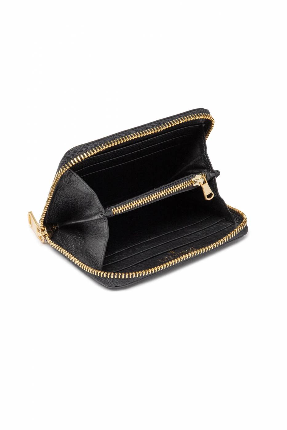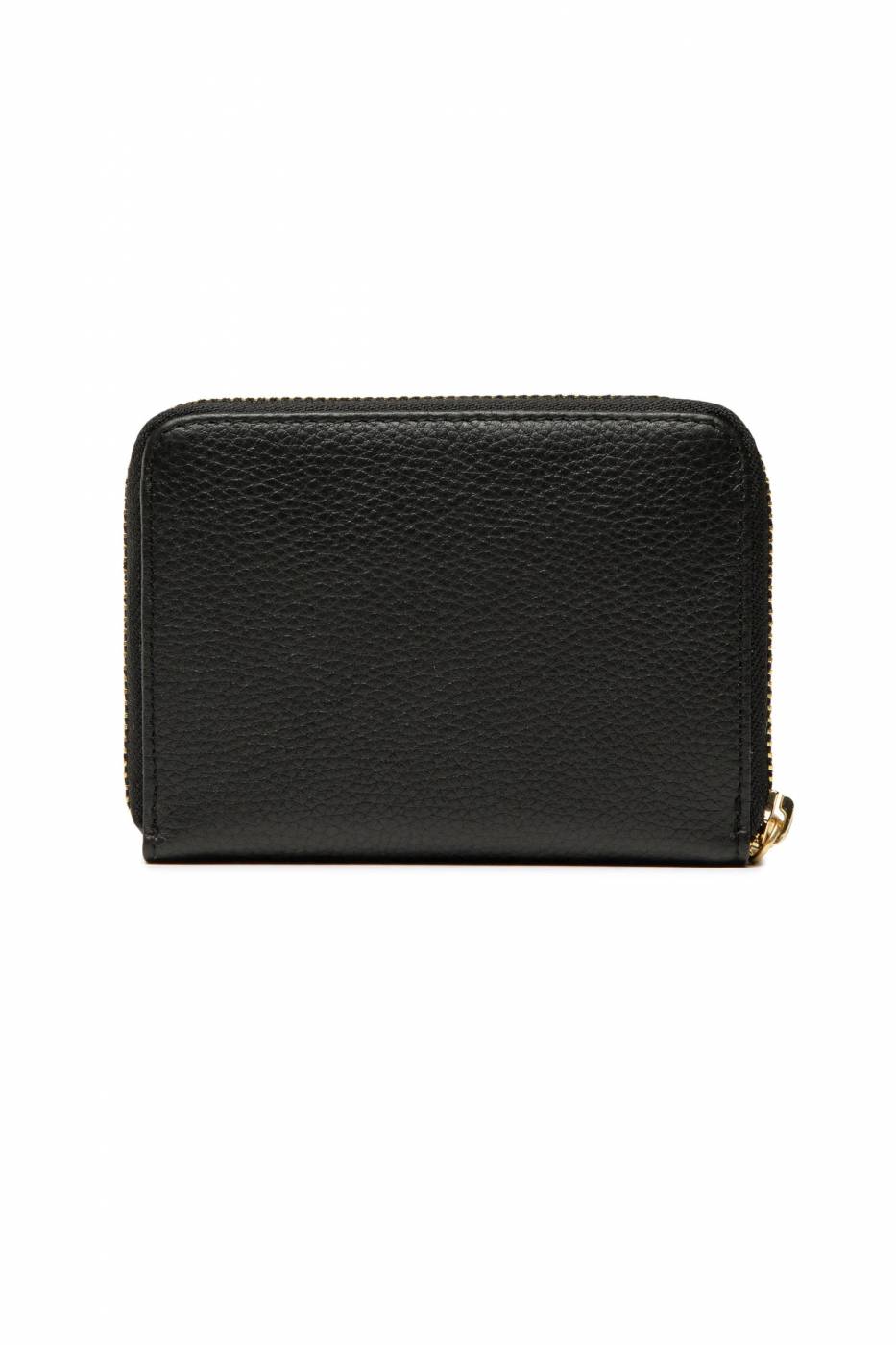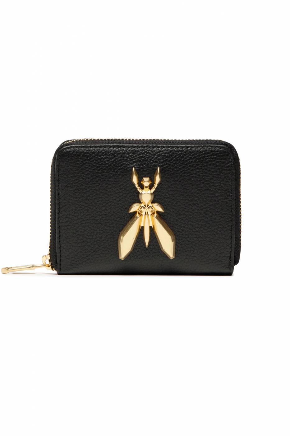 Portafogli Patrizia Pepe in pelle con logo Fly in metallo dorato. Chiusura con cerniera, portatessere e portaspiccioli interno. Misure: 13.5 x 9.5 x 2 cm