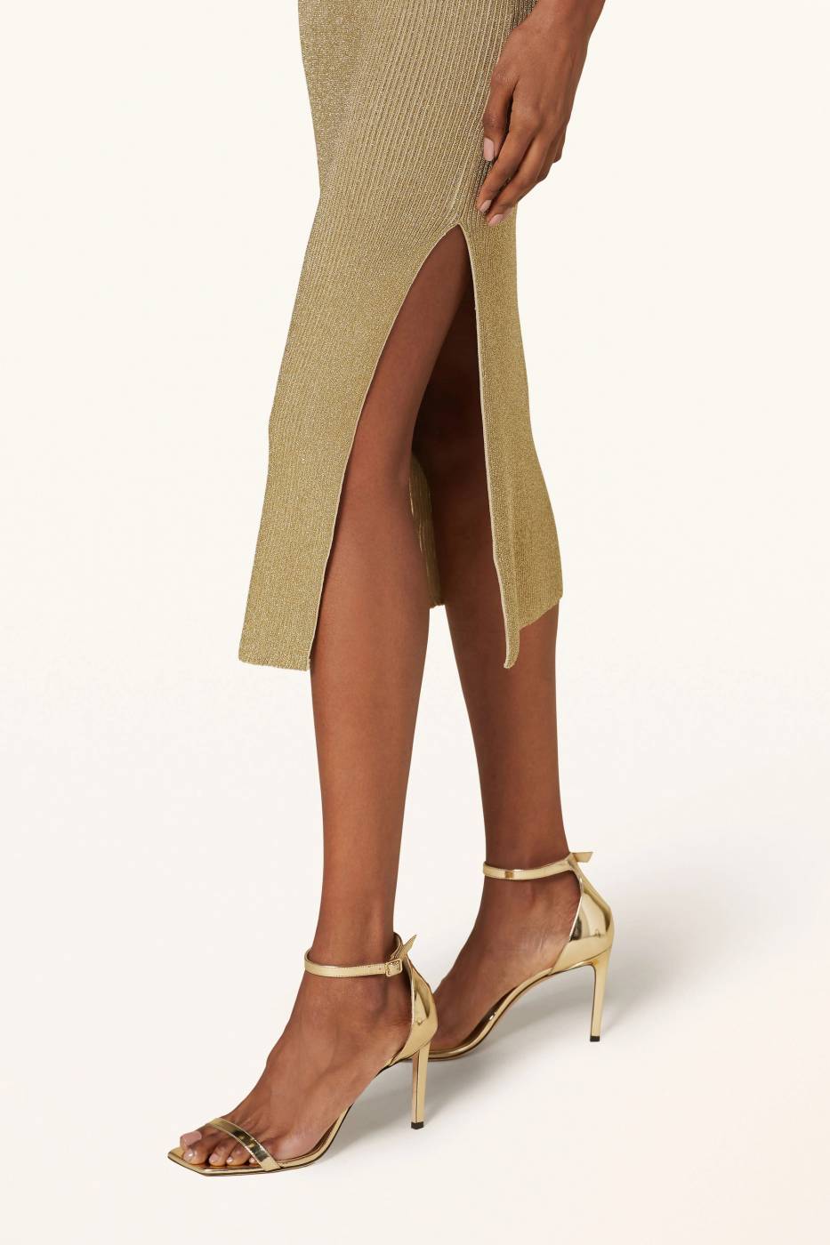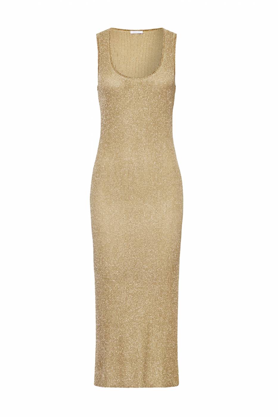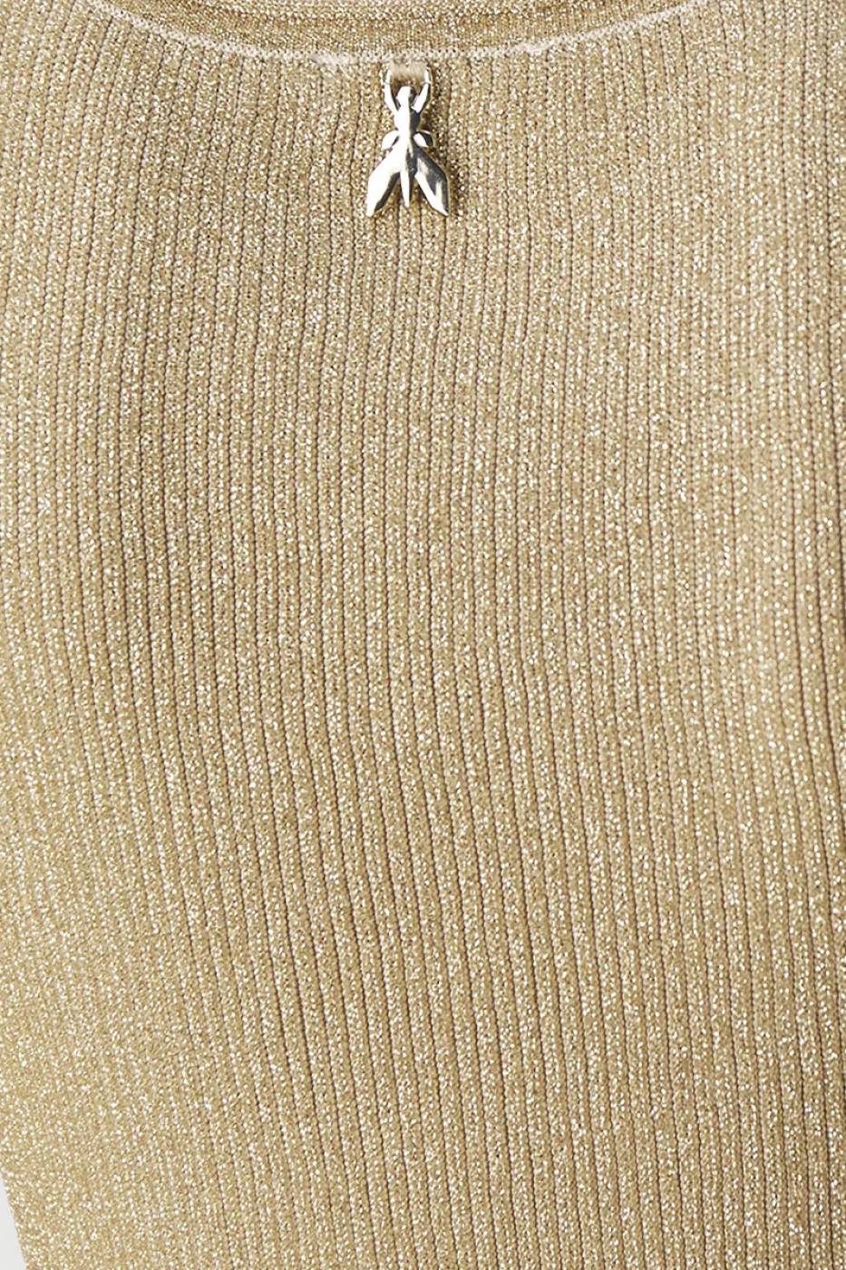 Abito Patrizia Pepe senza maniche in maglia a costine in lurex. Scollatura a girocollo, spacchi sui lati, lunghezza midi.