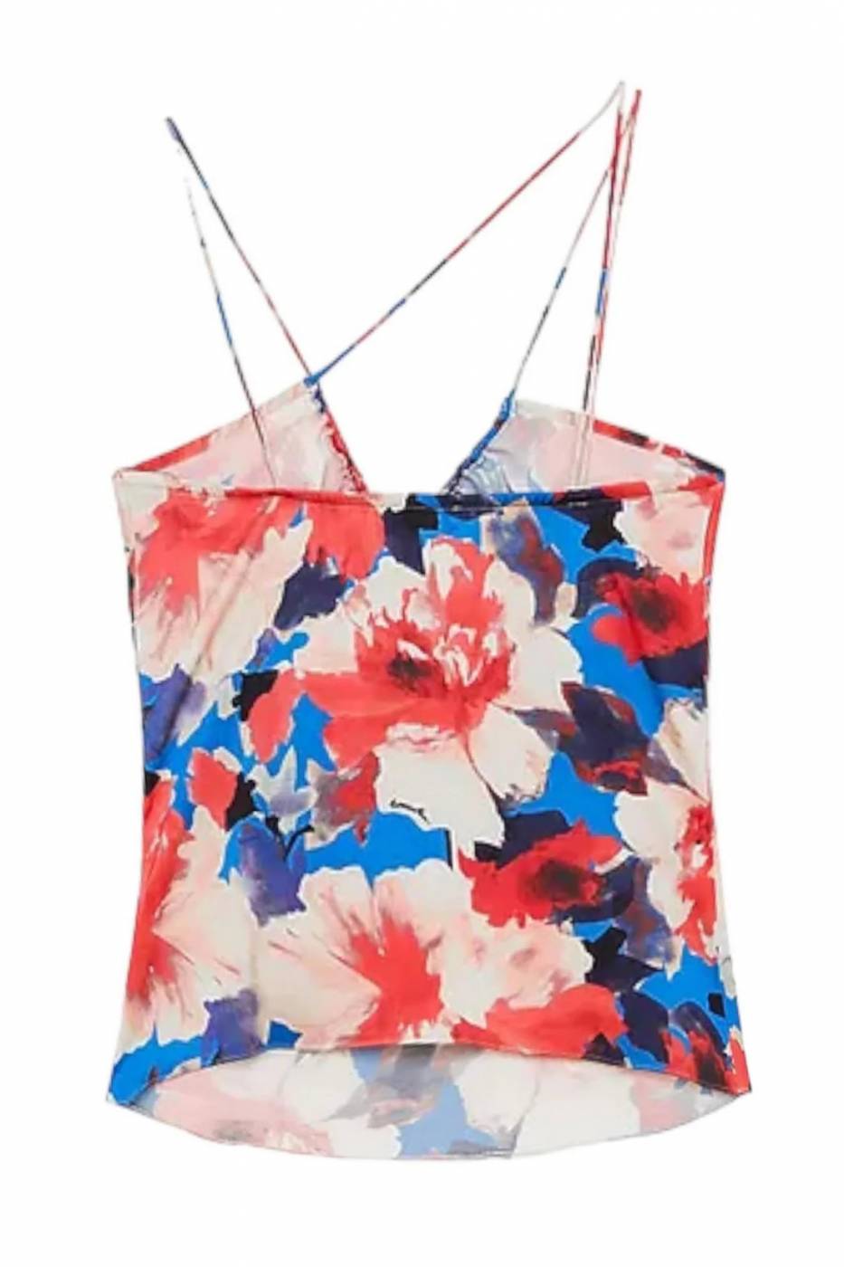 Top Patrizia Pepe in raso di viscosa a stampa floreale, con spalline e oblò, vestibilità aderente.