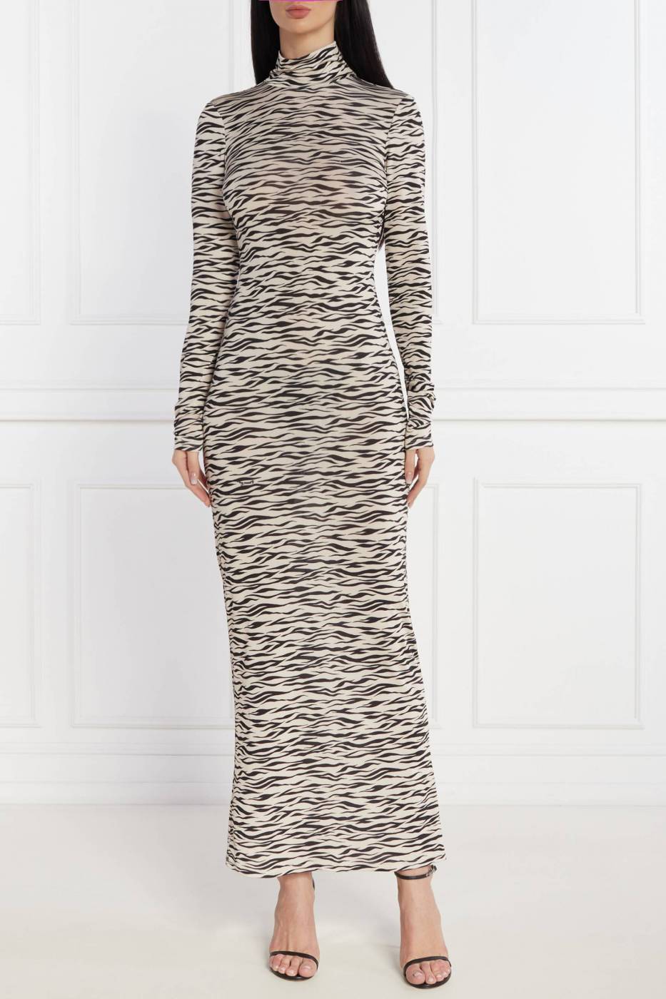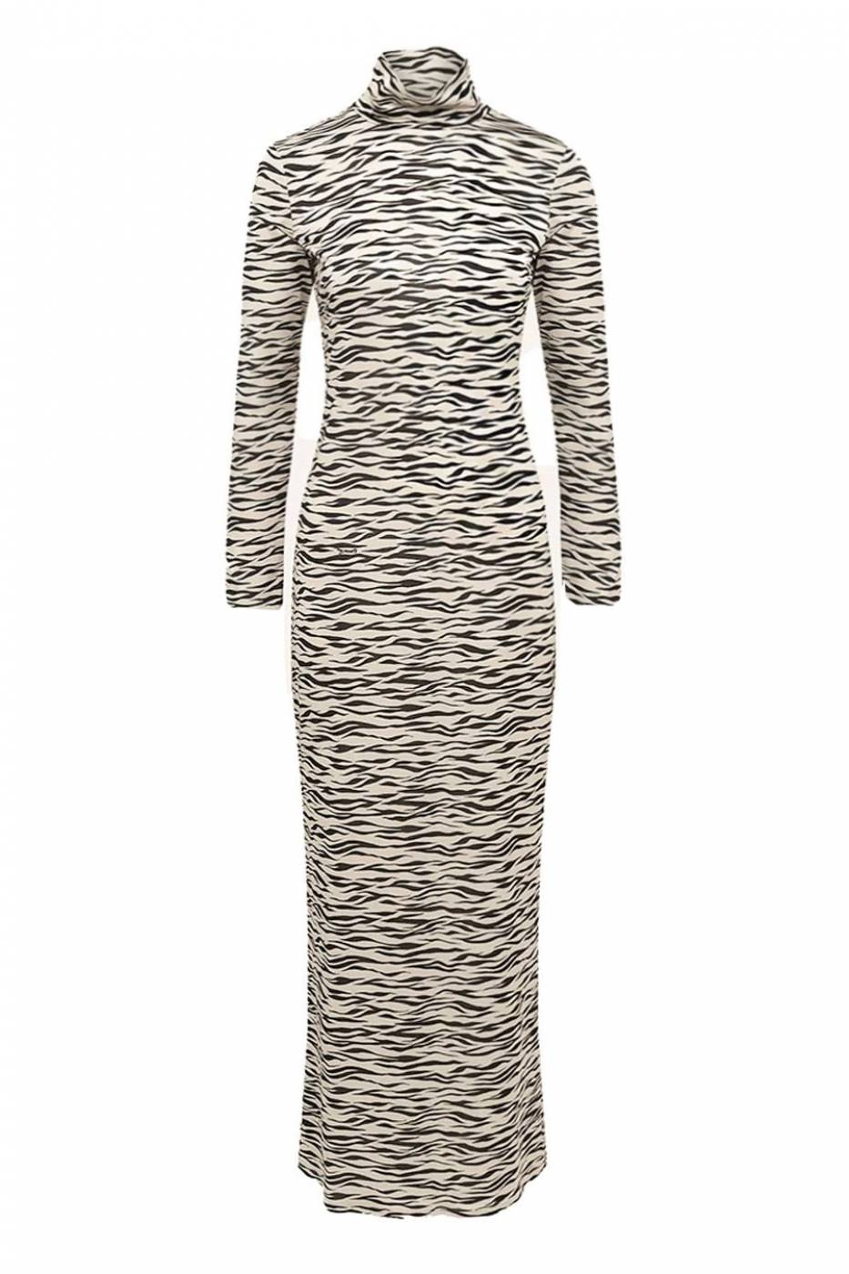 Abito Patrizia Pepe a fantasia zebrata in materiale elasticizzato. Aderente, manica lunga, scollo sulla schiena.