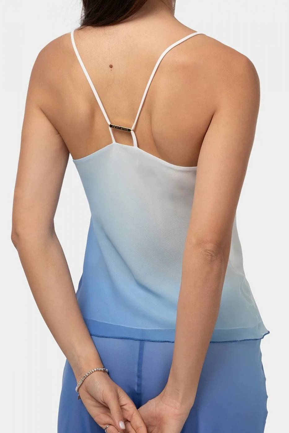 Top Patrizia Pepe degradè con scollo a goccia. Targhetta sul retro.
