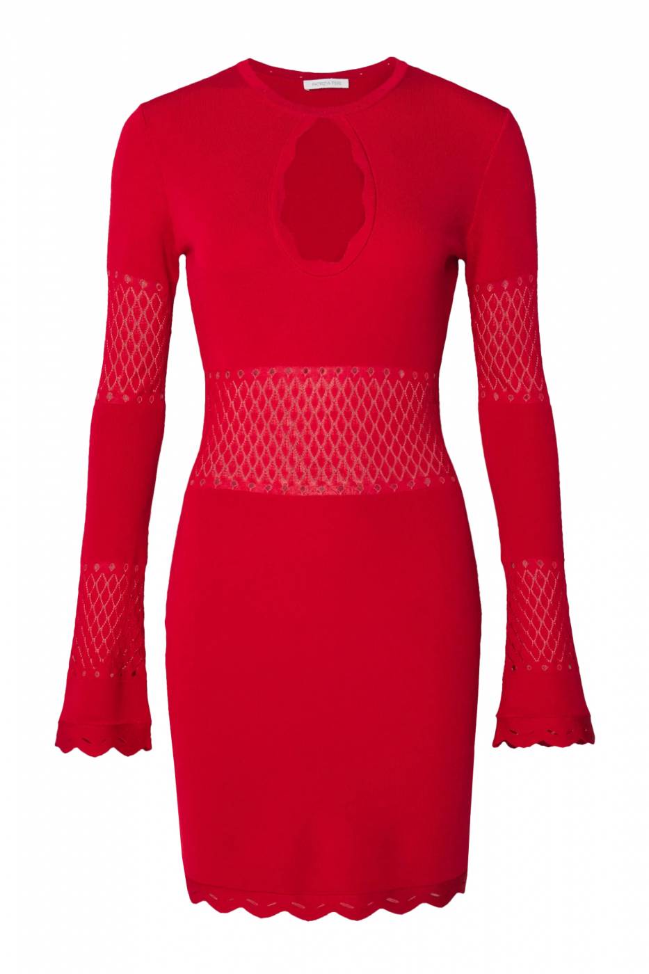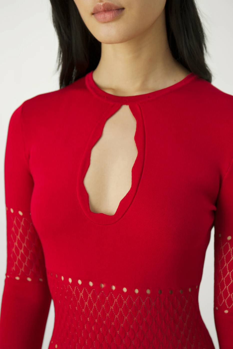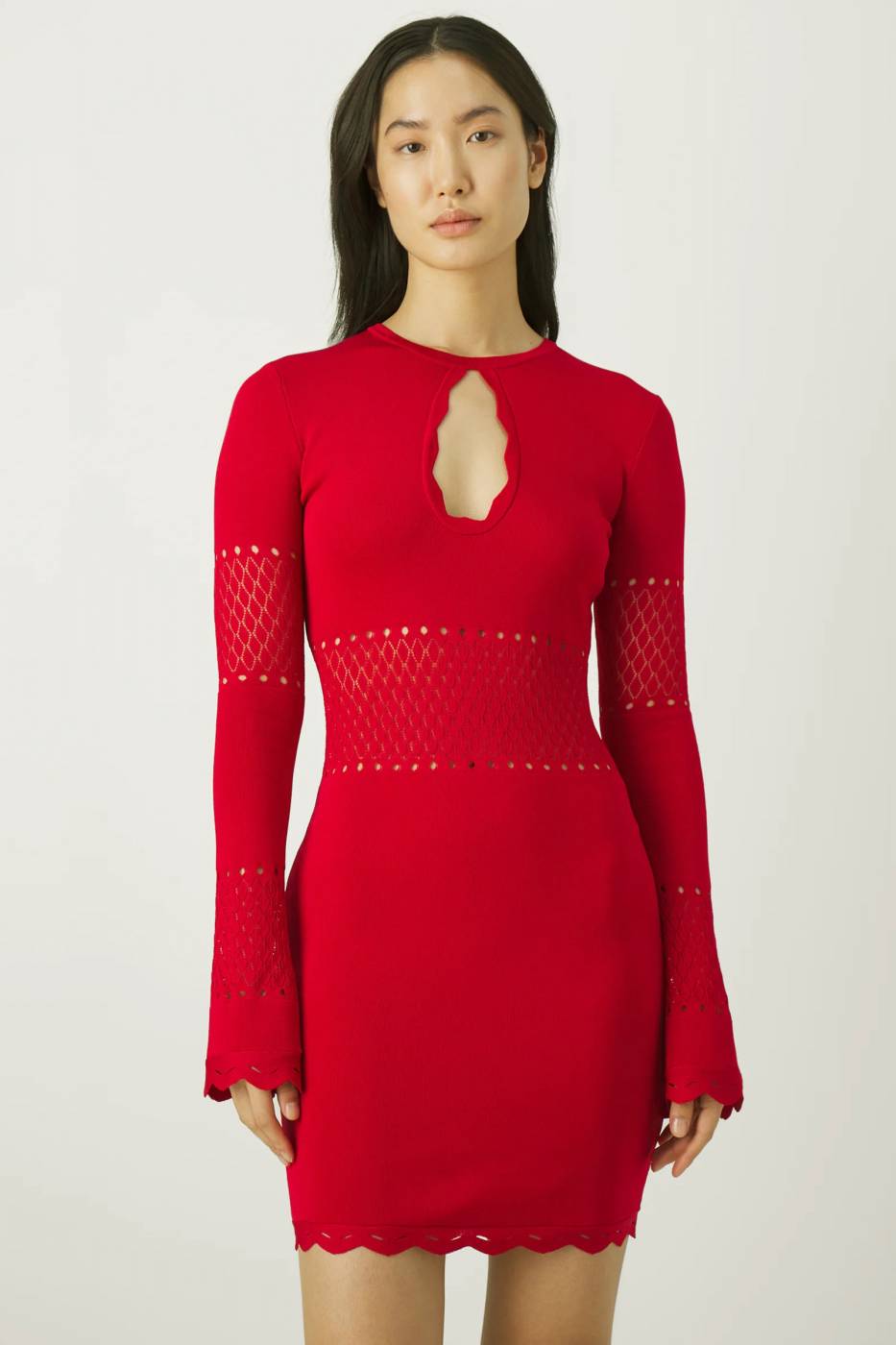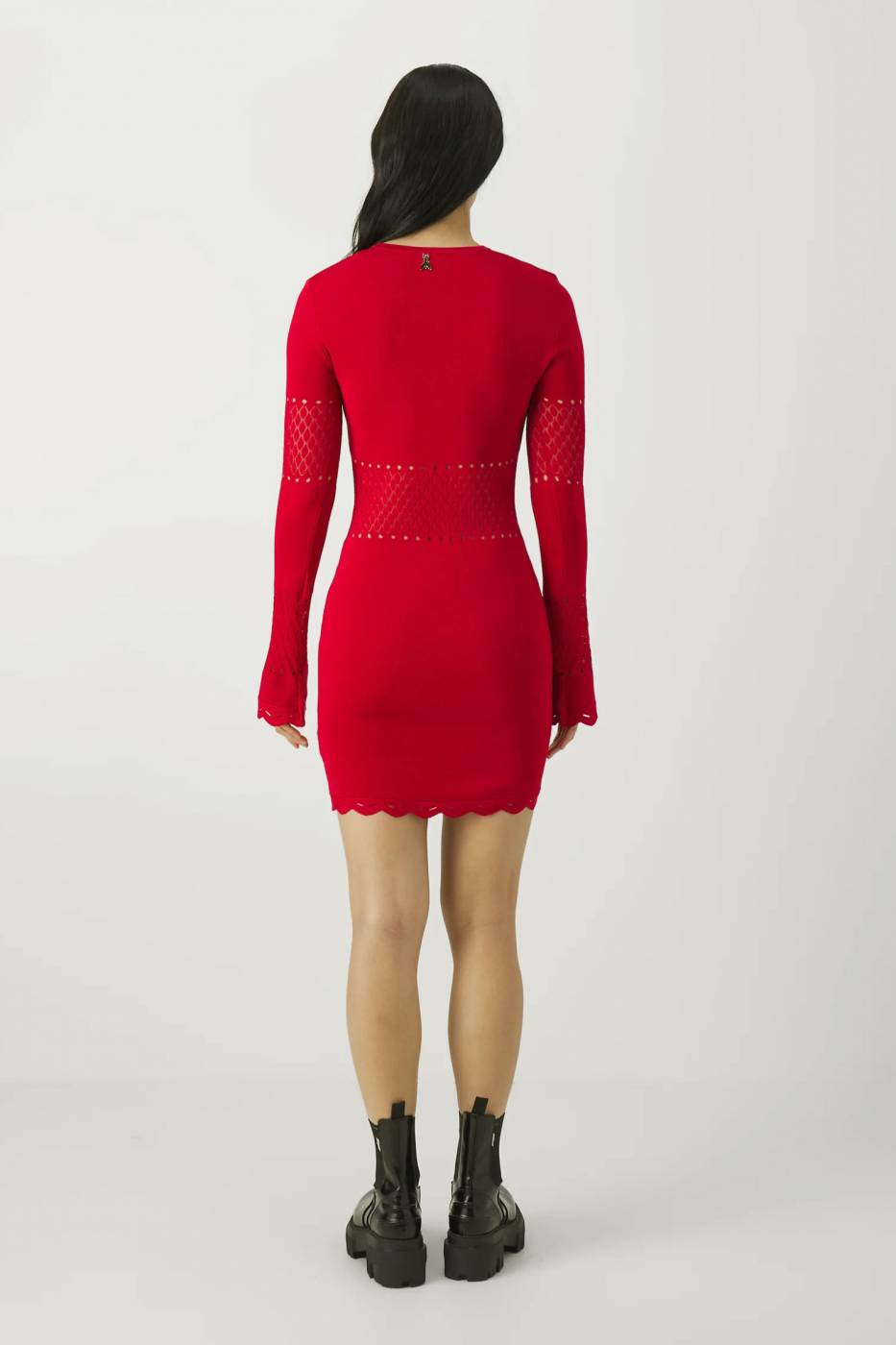 Abito Patrizia Pepe in misto viscosa con maniche lunghe e ampie, punti traforati e scollo tondo con oblò.
