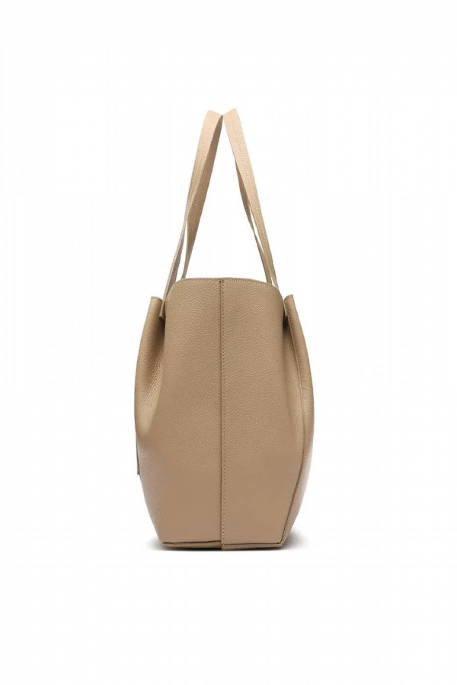 Borsa Patrizia Pepe in pelle, chiusura magnetica, pochette interna. Misure: 30/37 x 27 x 13 cm