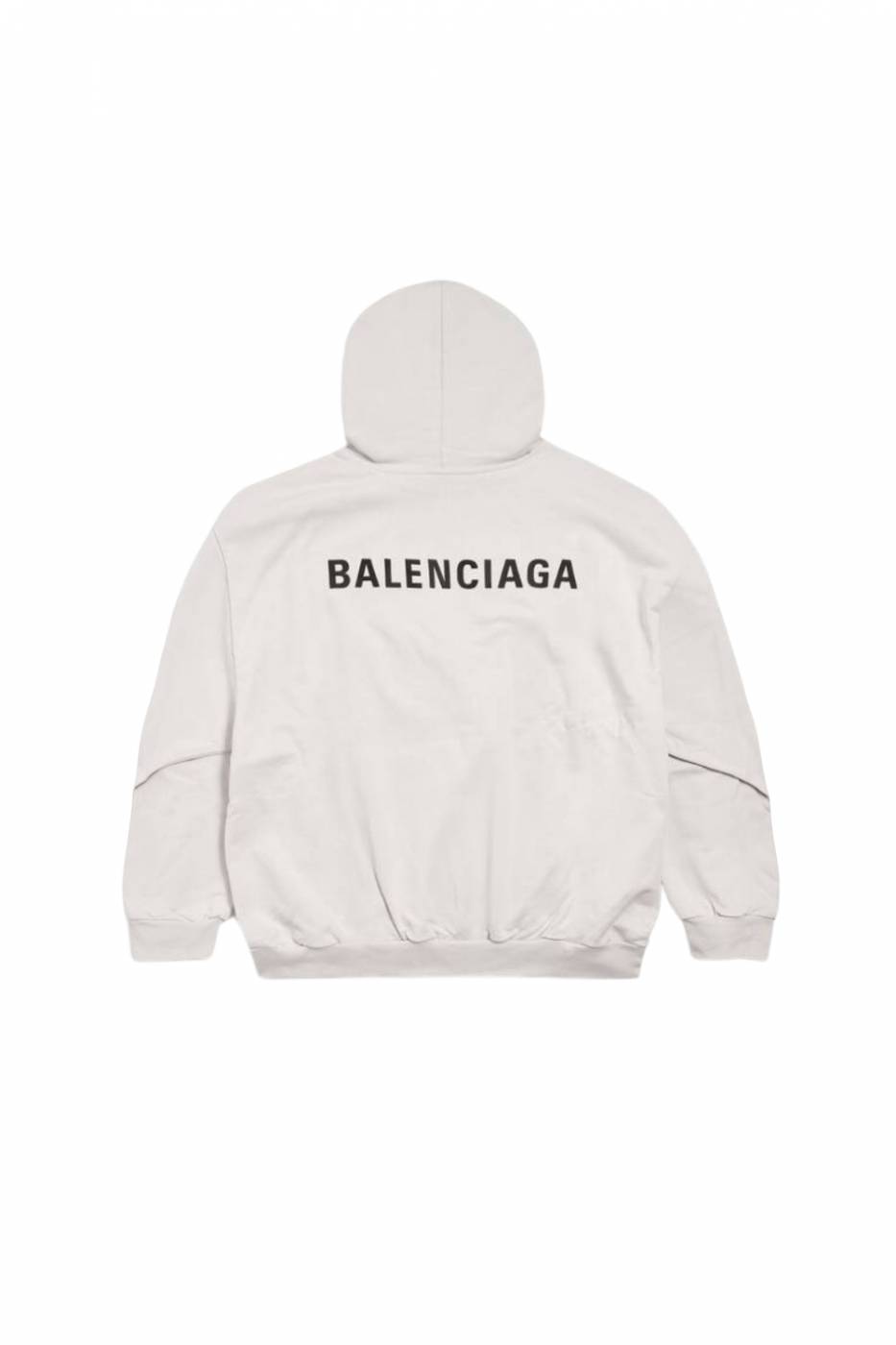 Felpa Balenciaga bianco sporco con ricamo logo piccolo sul davanti e maxi logo ricamato sul retro.