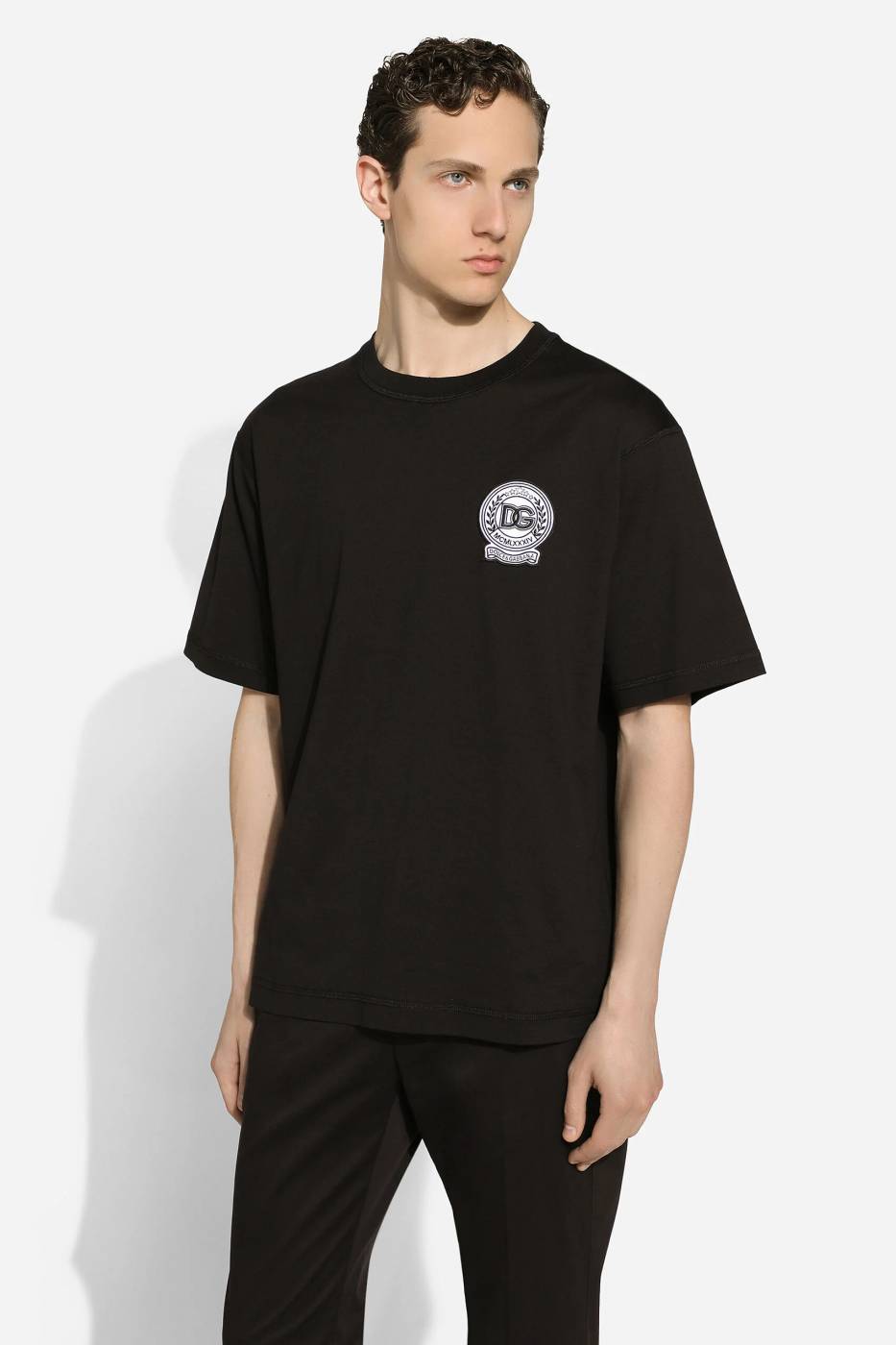 T-shirt in jersey di cotone con ricamo logo Dolce&Gabbana in rilievo