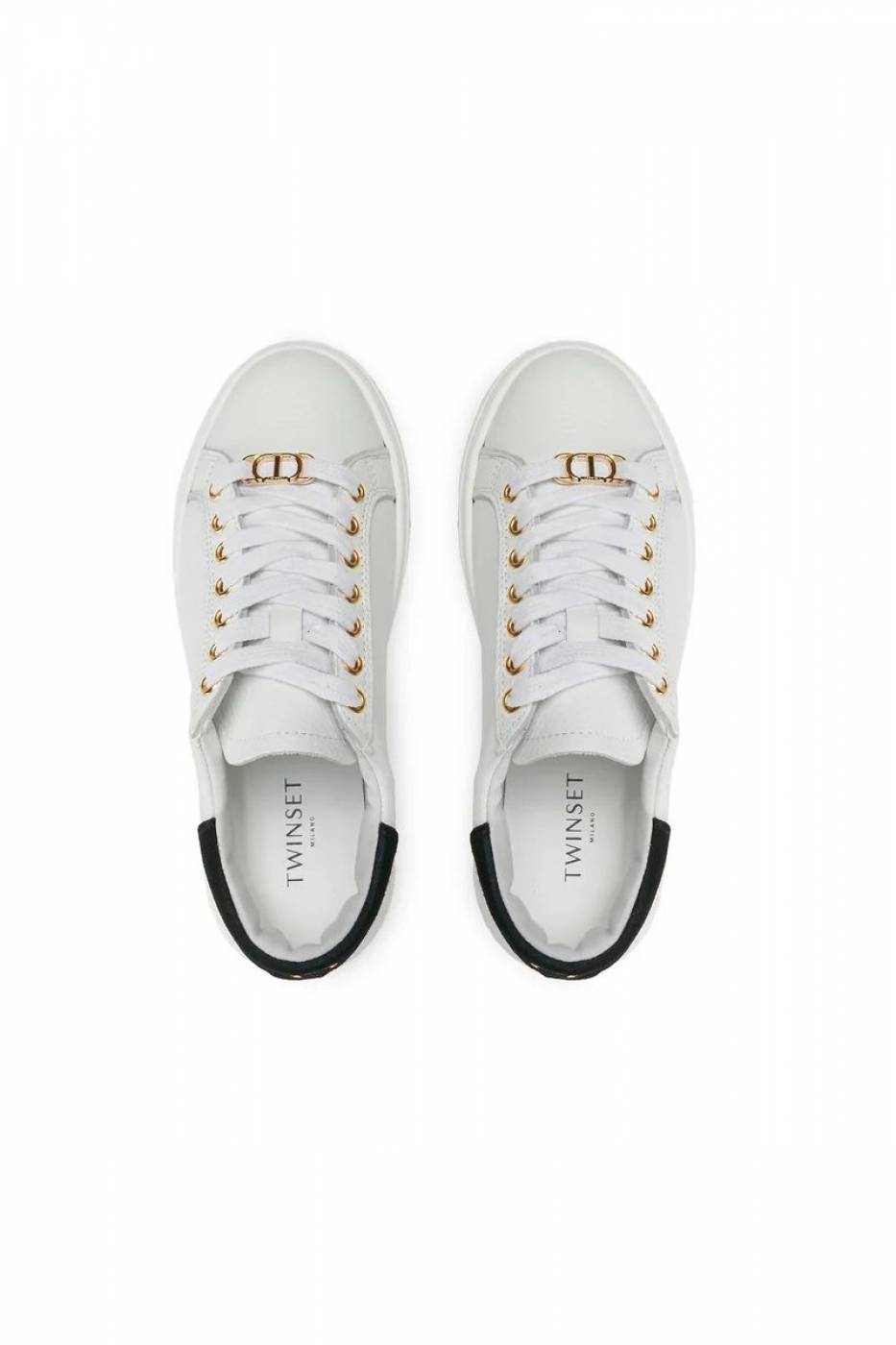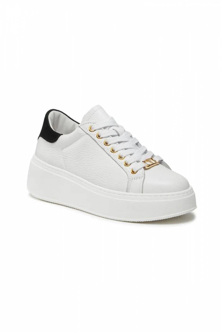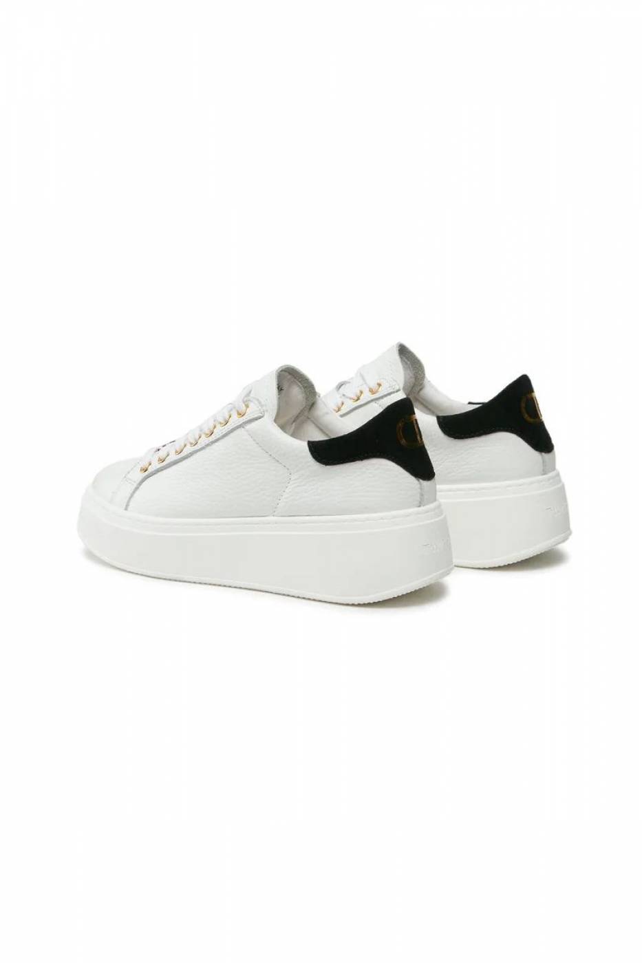Sneakers stringate in pelle con retro a contrasto e logo, fondo in gomma. Altezza fondo 5 cm