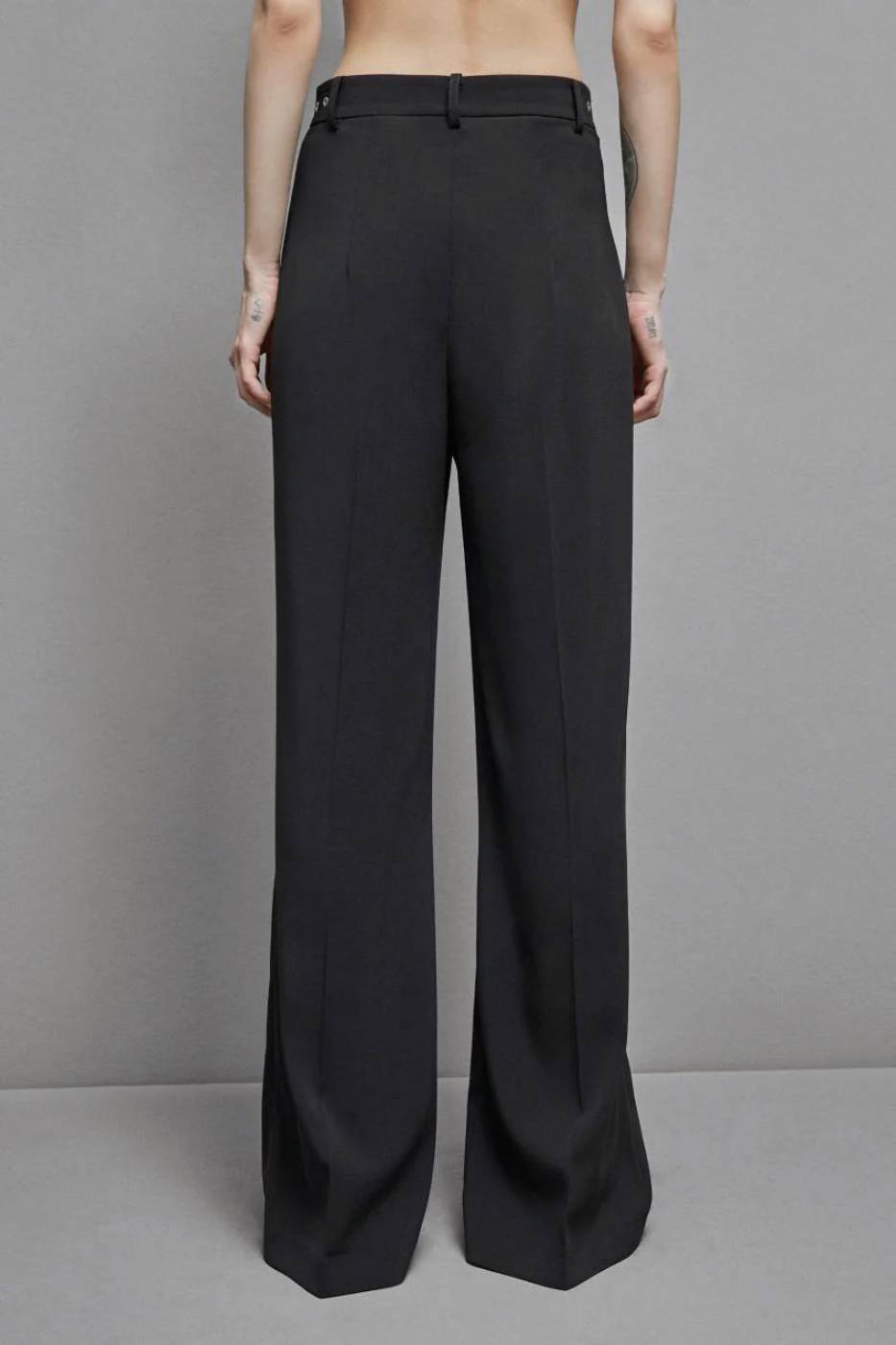 Pantaloni a palazzo in tessuto crepe stretch con borchie su cinturino.